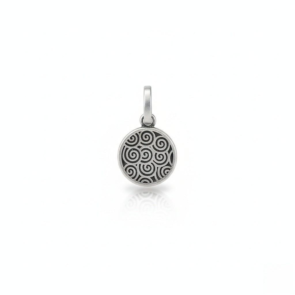 Sterling Silver Double-Sided Wave Pattern Round Charm