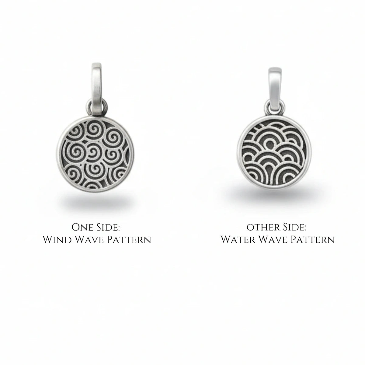 Design: Double-sided round pendant – wind wave motif on one side, water wave motif on the other