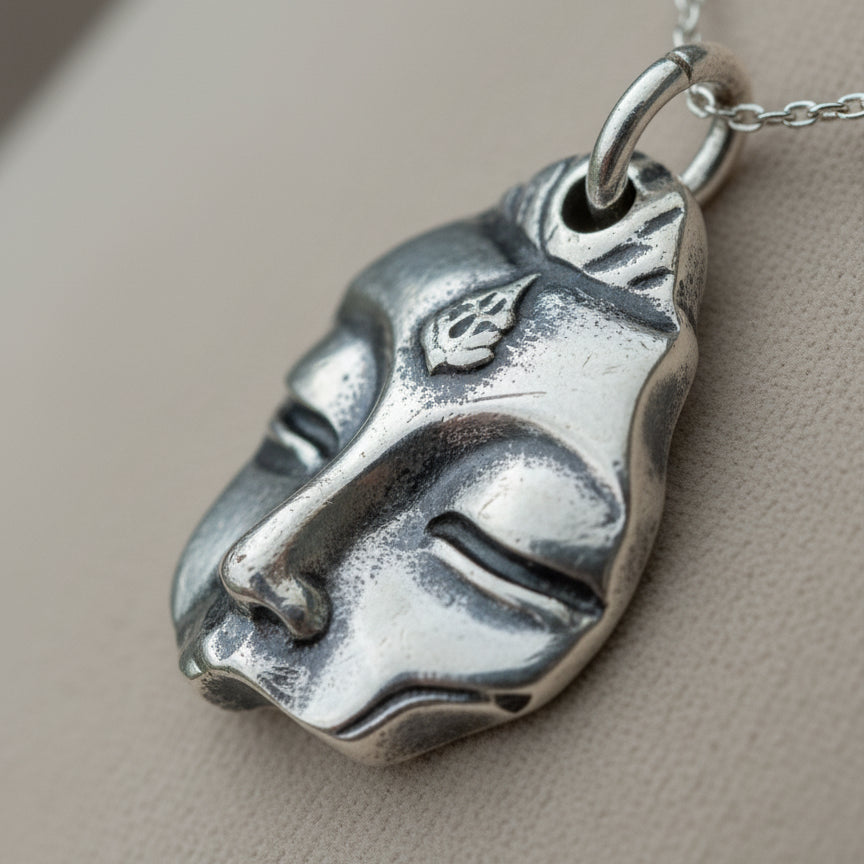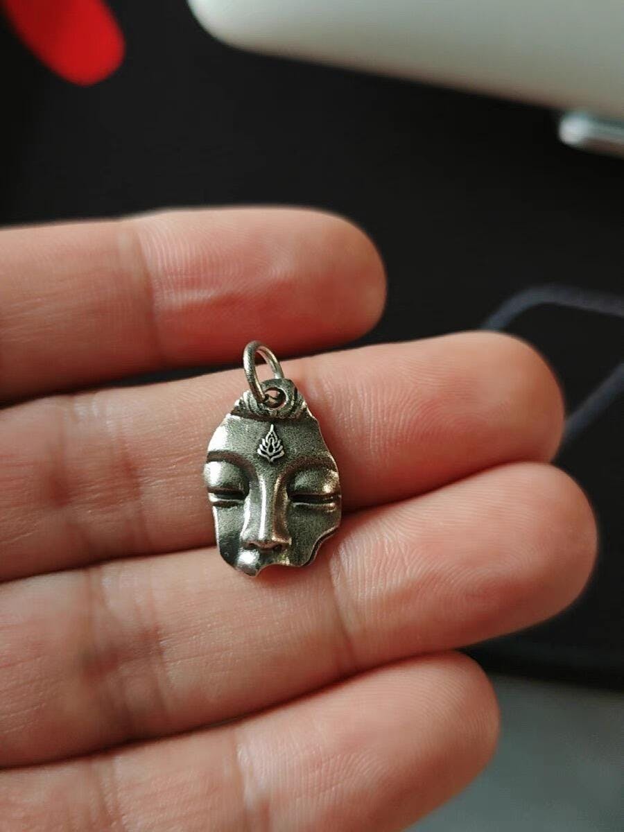 This unique pendant features a Buddha face motif, symbolizing peace, wisdom, and spiritual protection. The design is intentionally crafted without a mouth or ears — a subtle expression of the Eastern philosophy of “not hearing, not speaking,” representing inner calm, restraint, and the pursuit of enlightenment through silence and self-reflection. Inspired by traditional Buddhist art, it reflects a vintage, handcrafted aesthetic that adds meaningful charm to personal jewelry. Crafted from 925 sterling silver, this pendant is ideal for DIY bracelets, necklaces, or as a distinctive side hanging charm.
